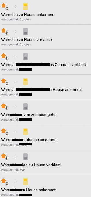 Diese Schalter lasse ich über die Integration "Homekit Bridge" zu Apple-Home spiegeln. In Apple Home habe ich für jeden im Haushalt lebenden Menschen eine Automation erstellt. Eine Super Erklärung zur Homekit Bridge Integration findet Ihr bei Simon42 (https://www.simon42.com/home-assistant-homekit/)
